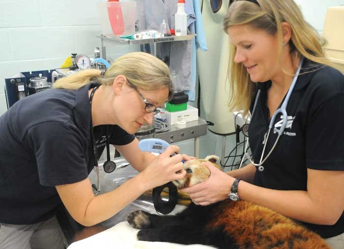 After Joey’s exam, Miller performed a yearly exam on a female red panda, Scarlet.